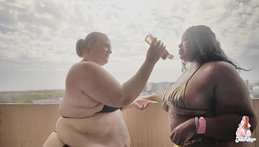 Mascoto wanted to go to the pool, but needed to oil up first... So, I grab the oil and give her a helping hand!! She returns the favor and oils me down too!!!