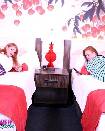 Julie Ginger and Julieta Velezz are chilling in their hotel room during their visit to Vegas and they are scrolling through a dating site looking for some hot guys to fuck, but they aren't having any luck at all. As they discuss the lack of dick, they realize they don't need dick to get off because they have each other! They start touching, kissing, licking and soon, they are both naked eating each other's fat, wet pussies. They don't need boys to cum, they have themselves.