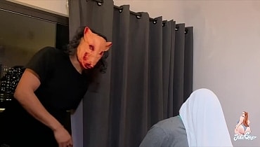 Julie and her man woke up in a random hotel room, not knowing how they got there as they have no memories! She see's a man tied to a chair with a bag over his head. She starts to freak out and realizes that it's her man after he speaks. A masked stranger steps from the shadows and starts talking about Julie having to take her mans payback....Julie didn't understand what he was talking about. She was told her man would be gone if she didn't suck and fuck the random man to get the antidote to save him!!! Julie obliges and sucks the strangers black dick, slobbering and spitting all over his shaft to the point it is dripping and dangling off his balls... He then bends her over and start to fuck her from behind talking about how this is revenge for what he did. Julie, still confused, gets fucked and cums, a lot! The stranger then gets on top of Julie and fucks her until he cums all over her big belly. Once he was done he revealed himself!!! Julie's man got caught by his friends with one of his friends girlfriend and he didn't want Julie to find out. Julie didn't accomplish her task fast enough.....